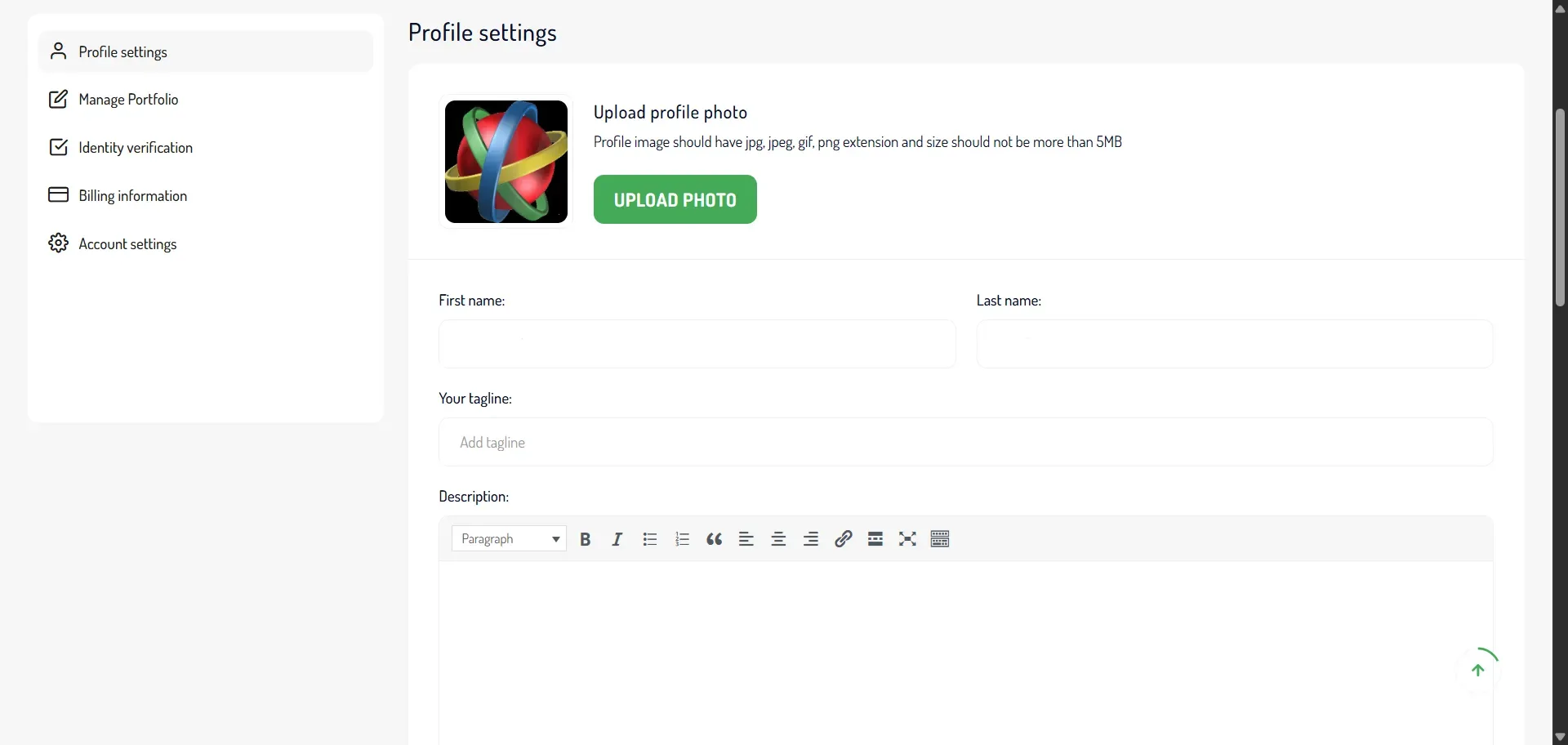 Update Your Profile and add your portfolio, through your dashboard by clicking on the settings menu. Add as much information to market yourself.
